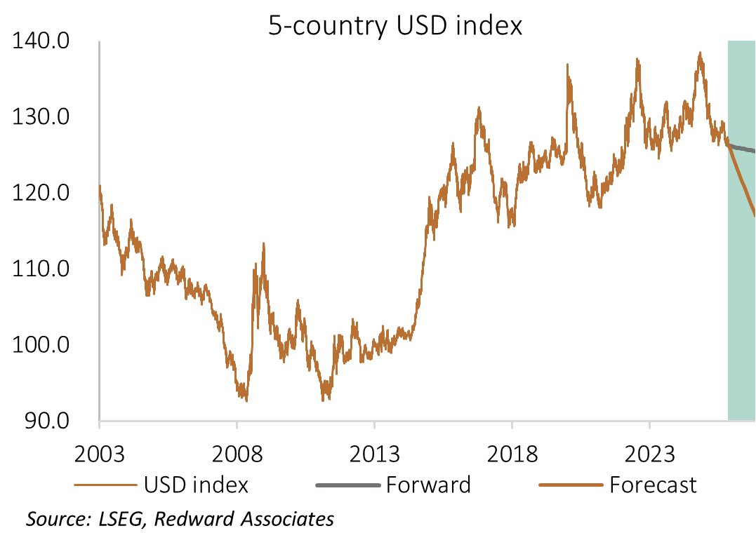 Loss of perceived US exceptionalism leading to a moderation in equity-linked portfolio capital flows has the potential to remove what was a significant tailwind of support for the US dollar.